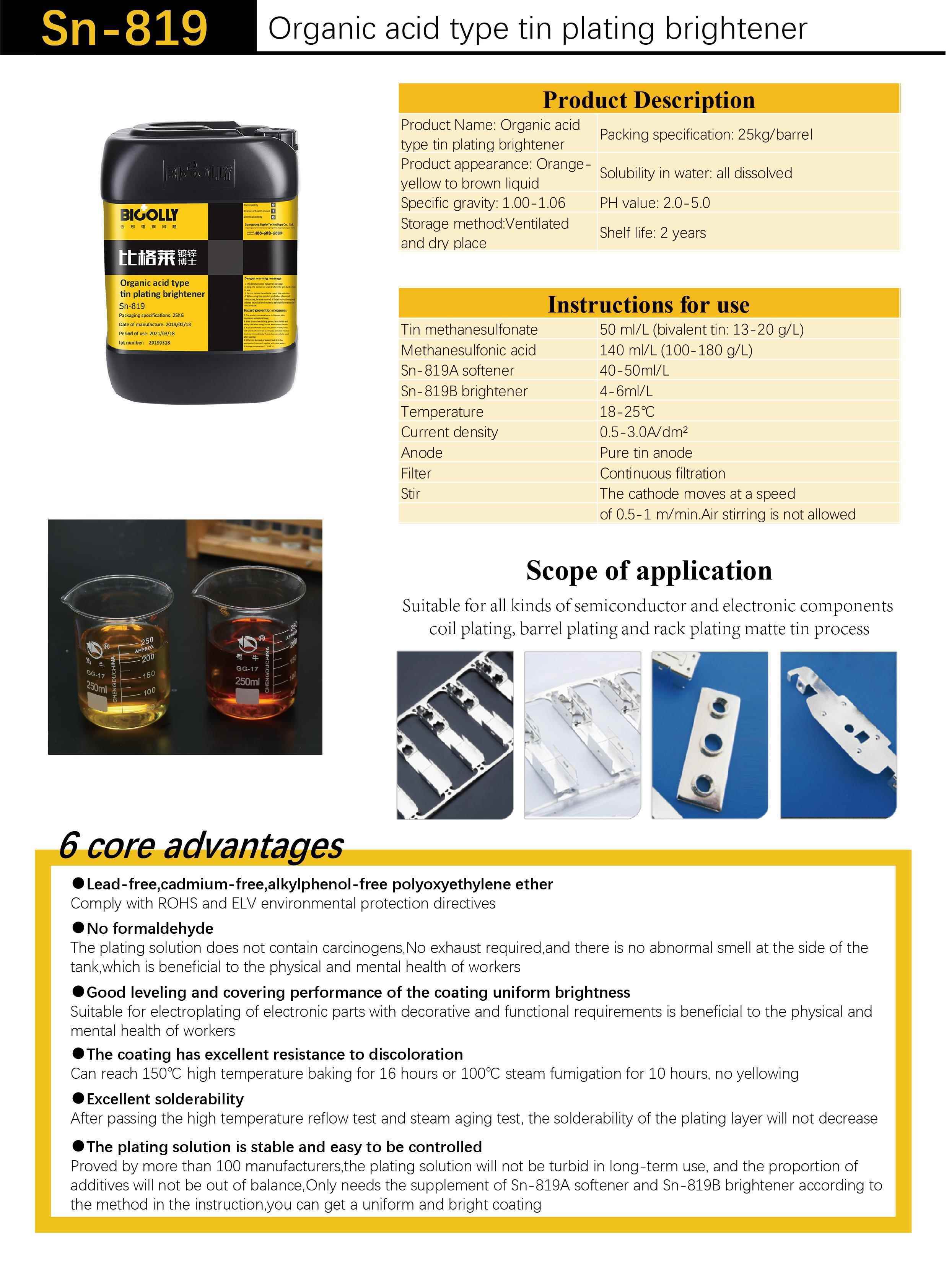 Organic Acid Type Tin Plating Brightener Sn-819